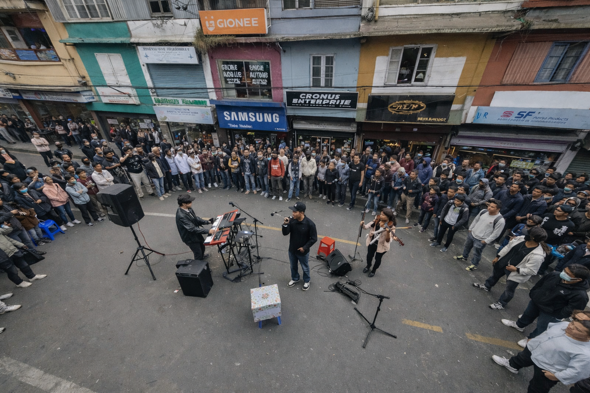 Aizawl Declares No Vehicle Zone Ahead of Christmas as Festive Spirit Sweeps City. Every year during Christmas and New Year celebrations, Aizawl city sets up a "no vehicle zone" in the main shopping area from 10 am to 4 pm. People from all parts of Mizoram visit the city to shop, listen to roadside shows making the streets very crowded with beautiful spirits . The zone helps shoppers move around safely without vehicles getting in their way.