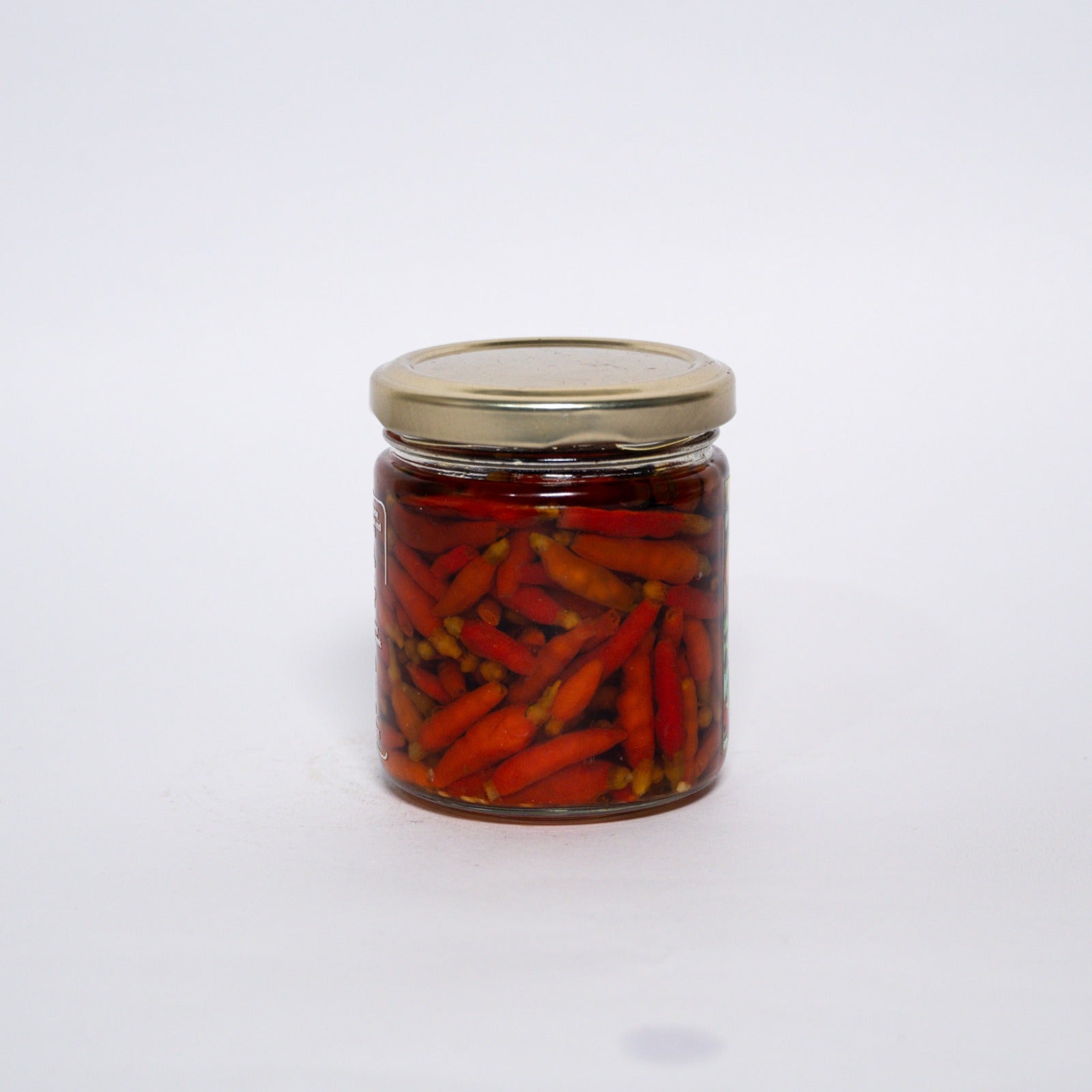 Experience the authentic sting of Mizoram with our premium Bird’s Eye Chilli in Mustard Oil. Handpicked at peak ripeness, these fiery little peppers locally known as Hmarcha Te are preserved in high-quality, pungent mustard oil to maintain their signature crunch and explosive heat. Made with 100% fresh Bird’s Eye Chillies, known for being one of the spiciest varieties in the world.Homemade with care by KIM AgroBiz to ensure every jar meets the highest standards of taste and hygiene.